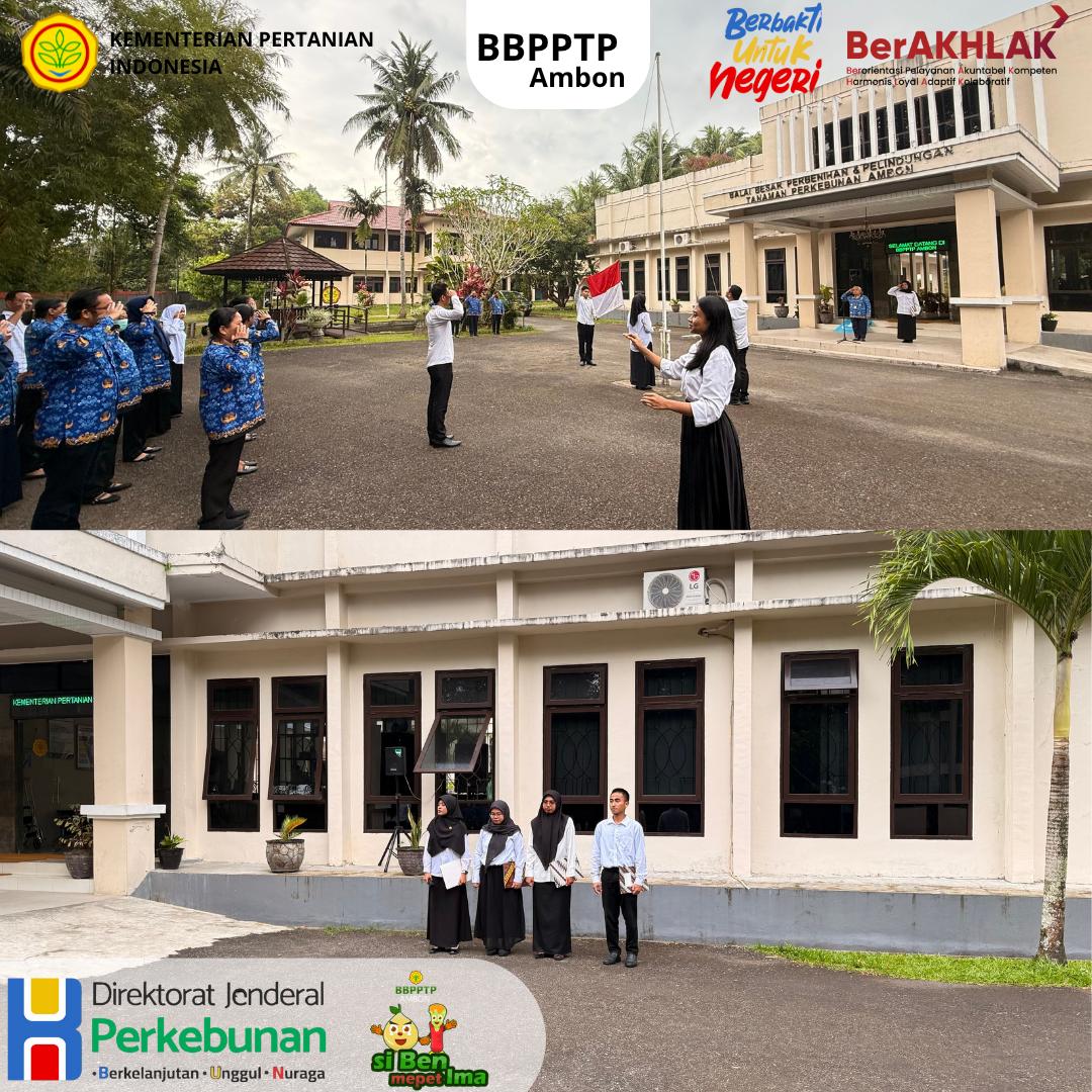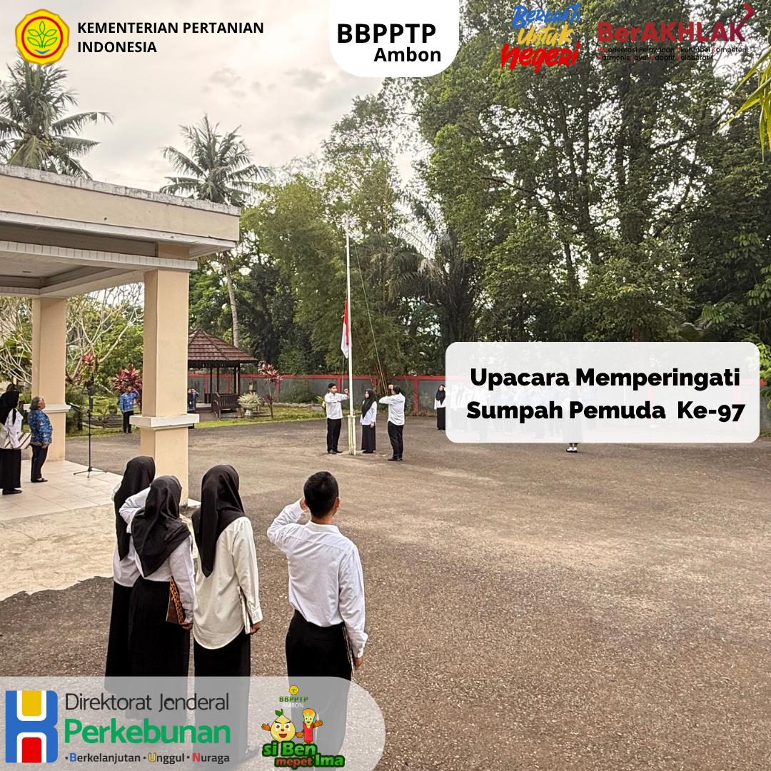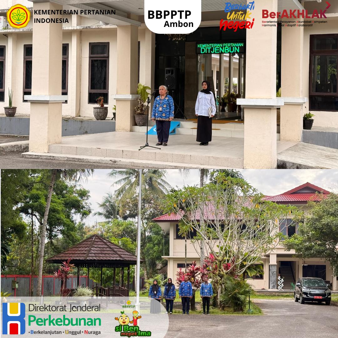 Diposting Selasa, 28 Oktober 2025 07:10 amAmbon, 28 Oktober 2025 — Seluruh pegawai Balai Besar Perbenihan dan Pelindungan Tanaman Perkebunan (BBPPTP) Ambon hari ini mengikuti Upacara Peringatan Hari Sumpah Pemuda ke-97 dengan mengenakan seragam KORPRI.
