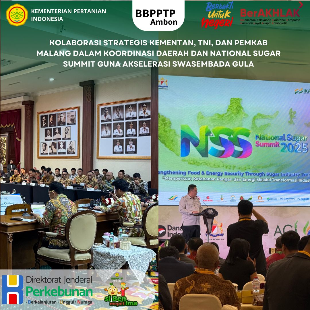 Direktur Jenderal Perkebunan, Abdul Roni Angkat, menginstruksikan agar seluruh jajaran, termasuk BBPPTP Ambon sebagai Unit Pelaksana Teknis, melakukan percepatan realisasi Anggaran Biaya Tambahan (ABT) dengan menyederhanakan proses administrasi tanpa mengurangi akurasi data di lapangan. Menindaklanjuti hal tersebut, Kepala BBPPTP Ambon, Dr. Kardiyono, S.TP., M.Si., menyatakan kesiapan timnya untuk mengawal sisi teknis di lapangan, khususnya di wilayah Malang. “Kami berkomitmen menjamin setiap benih yang disalurkan adalah benih bermutu tinggi dan bersertifikat. Fokus kami adalah memvalidasi data CPCL secara akurat agar bantuan pemerintah tepat sasaran, sehingga mampu meningkatkan rendemen dan kesejahteraan petani tebu di daerah,” ujar Kardiyono.
