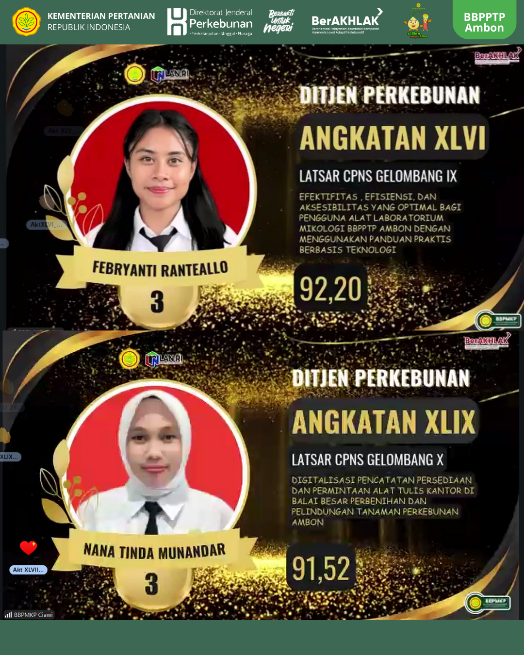 Apresiasi Prestasi Peserta Terbaik dan Kelulusan CPNS BBPPTP Ambon Tahun Anggaran 2024
