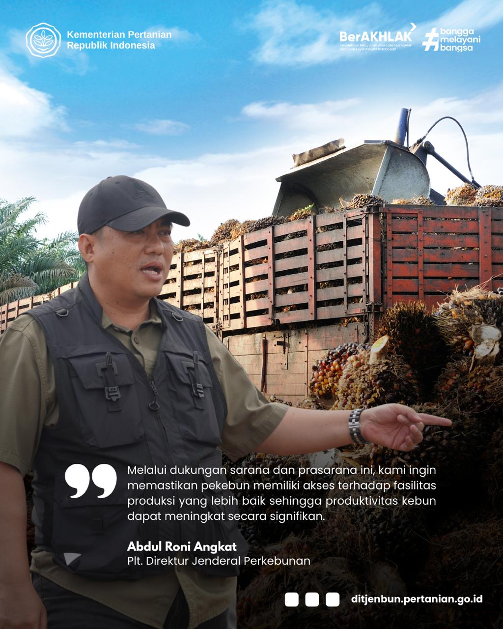 Direktur Jenderal Perkebunan, Abdul Roni Angkat menjelaskan bahwa Program Sarana dan Prasarana (Sarpras) Perkebunan Kelapa Sawit merupakan salah satu instrumen penting dalam mendukung penguatan sektor hulu sawit, khususnya bagi pekebun rakyat.