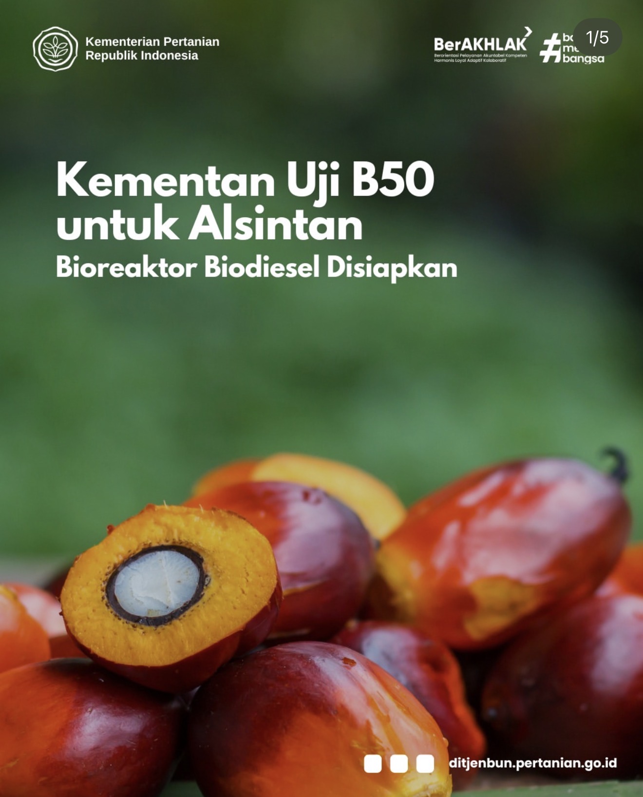 Pernyataan tersebut menegaskan bahwa percepatan pemanfaatan biodiesel, termasuk melalui program B50, menjadi bagian penting dalam mengurangi ketergantungan terhadap bahan bakar fosil sekaligus meningkatkan nilai tambah komoditas dalam negeri.