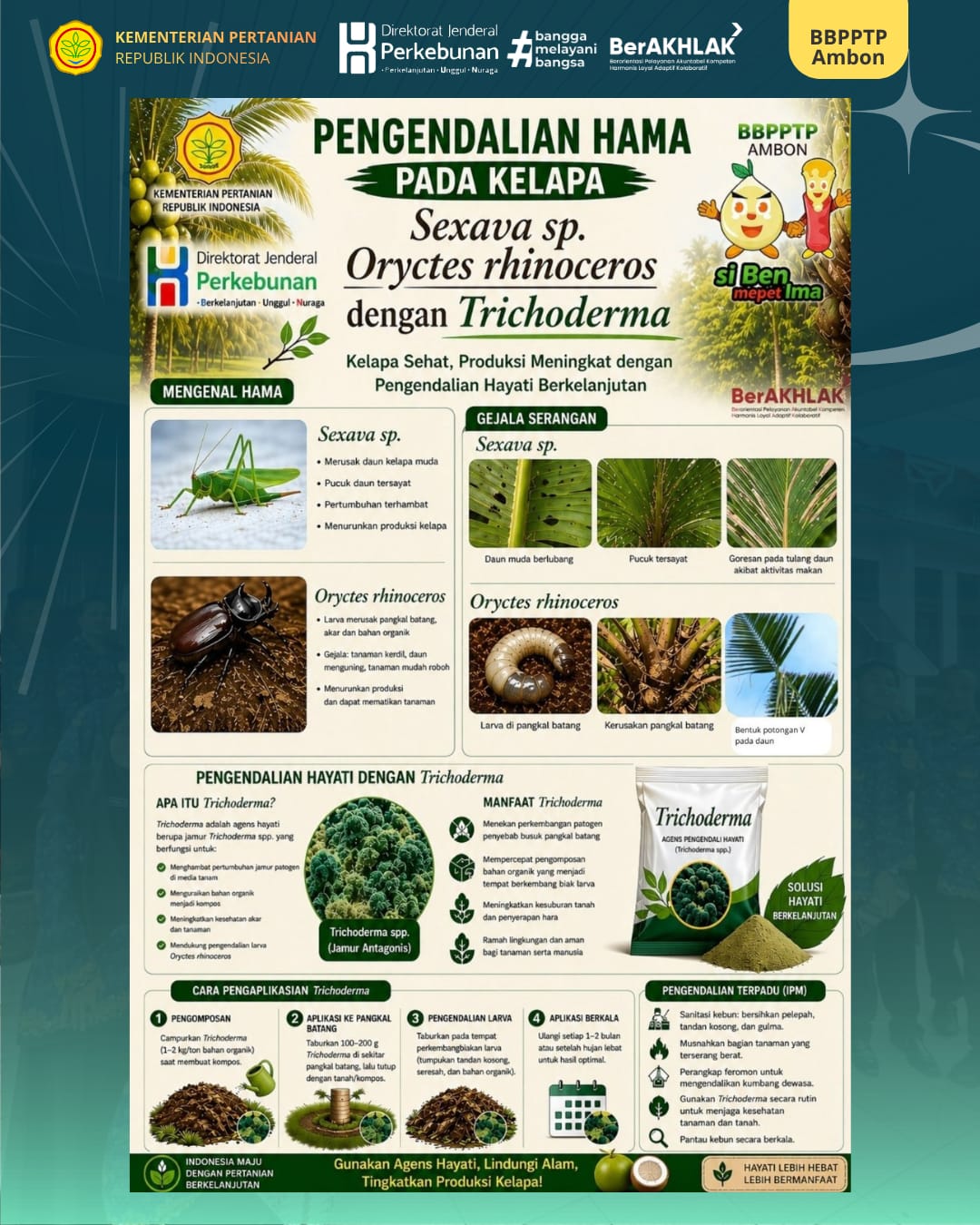 Menuju kelapa sehat dan produksi meningkat dengan sistem Pengendalian Hayati Berkelanjutan. Inisiatif dari Balai Besar Perbenihan dan Proteksi Tanaman Perkebunan (BBPPTP) Ambon.